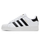 - Зовні: Adidas Superstar привертає увагу своїм класичним дизайном та впізнаваними характеристиками. Верх виготовлений з високоякісної шкіри, що надає взуттю міцності та стильного зовнішнього вигляду. Відомі три смуги Adidas на бокових сторонах та гумовий носок додають унікальності та оригінальності загальному образу;